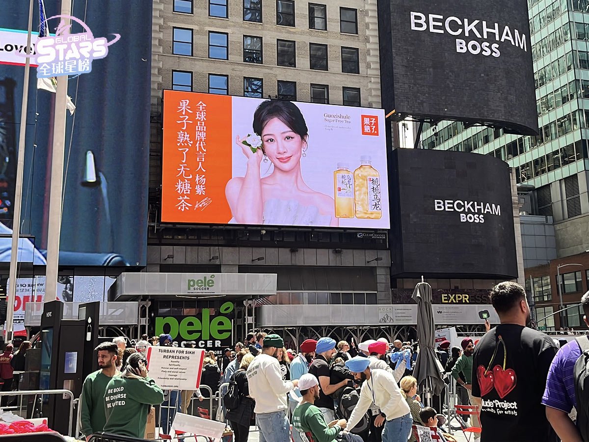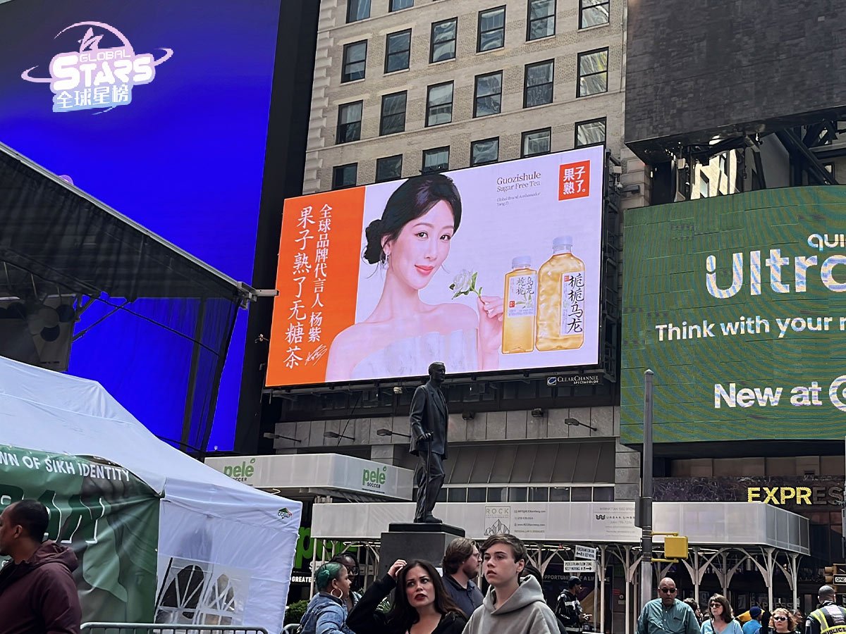 Global Stars has enabled Guozi Shu Le, along with its brand ambassador Yang Zi, to land in core outdoor advertising Spaces in five major cities across continents, including New York, Paris, Sydney, Argentina, and South Africa, showcasing the new charm of Chinese tea beverages to the world. From Times Square in New York to the streets of Paris, from the city center of Sydney to the Obelisk in Buenos Aires, and then to the shopping centers in Johannesburg, Guozi Riao, with its unique brand image, conveys to global consumers the brand concept of “a new trend of tea beverages favored by young people”.